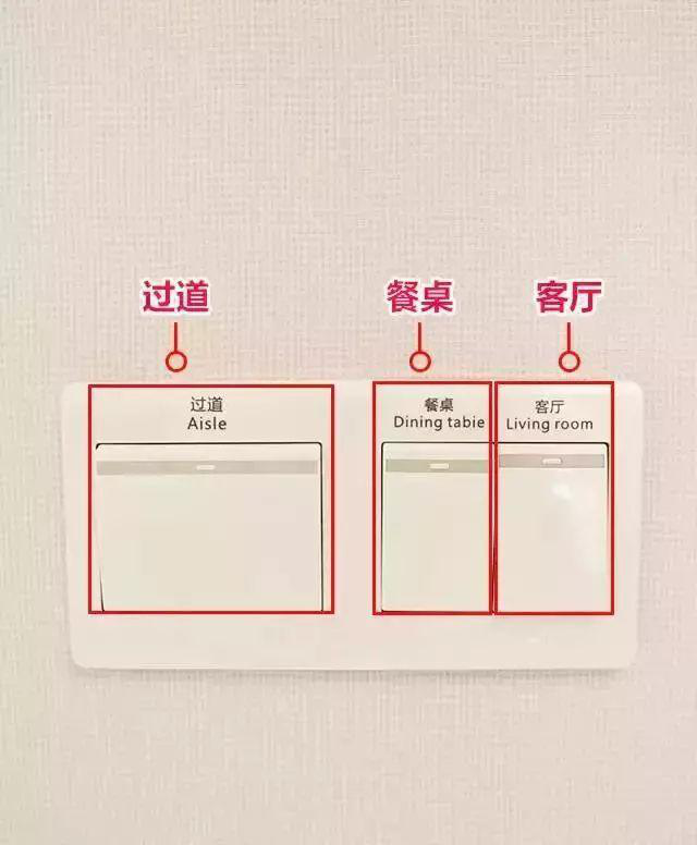 ▲入戶玄關處插座面板,標示有開關控制區域,文字與英文標注,一目了然,不用一個個試。