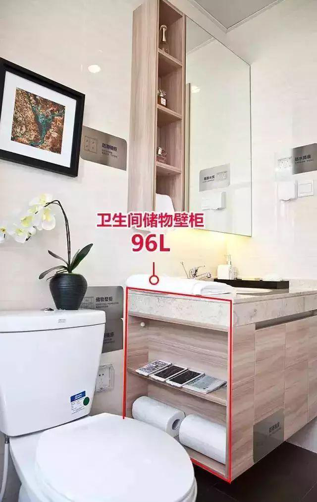 ▲坐便器邊的儲物壁柜,入廁手機族的福利,方便儲物,便于放置衛生紙及衛生間清潔物品。